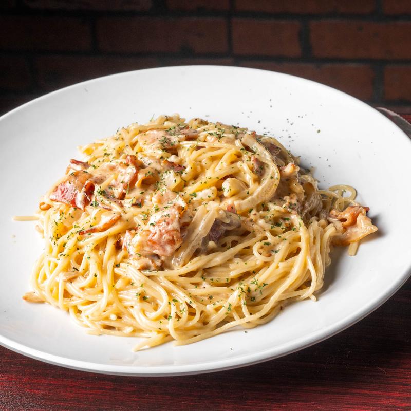 Onions and bacon sautéed in house-made alfredo sauce over your choice of pasta.